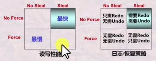 · Steal:允许事务在commit之前把内存的数据写入磁盘。